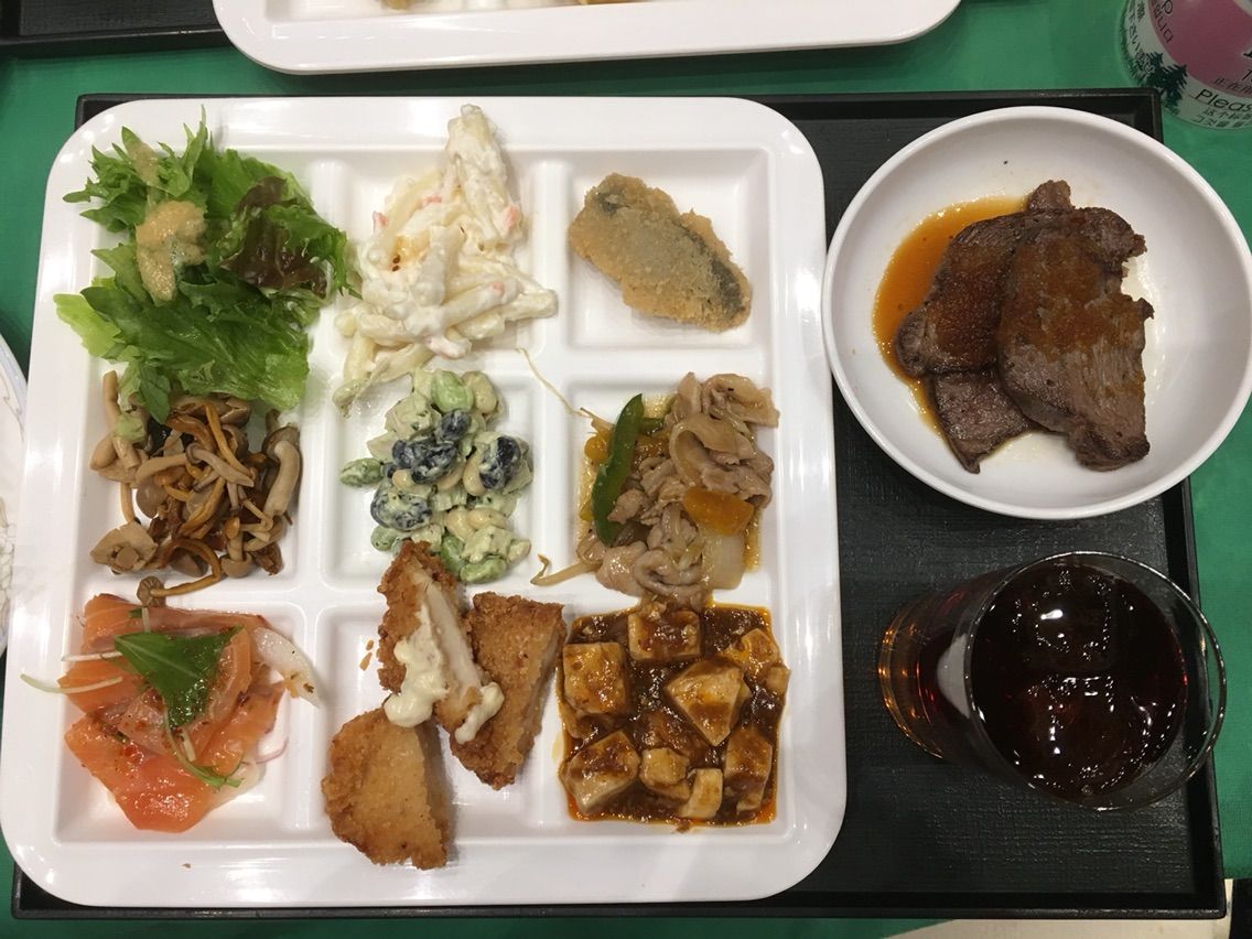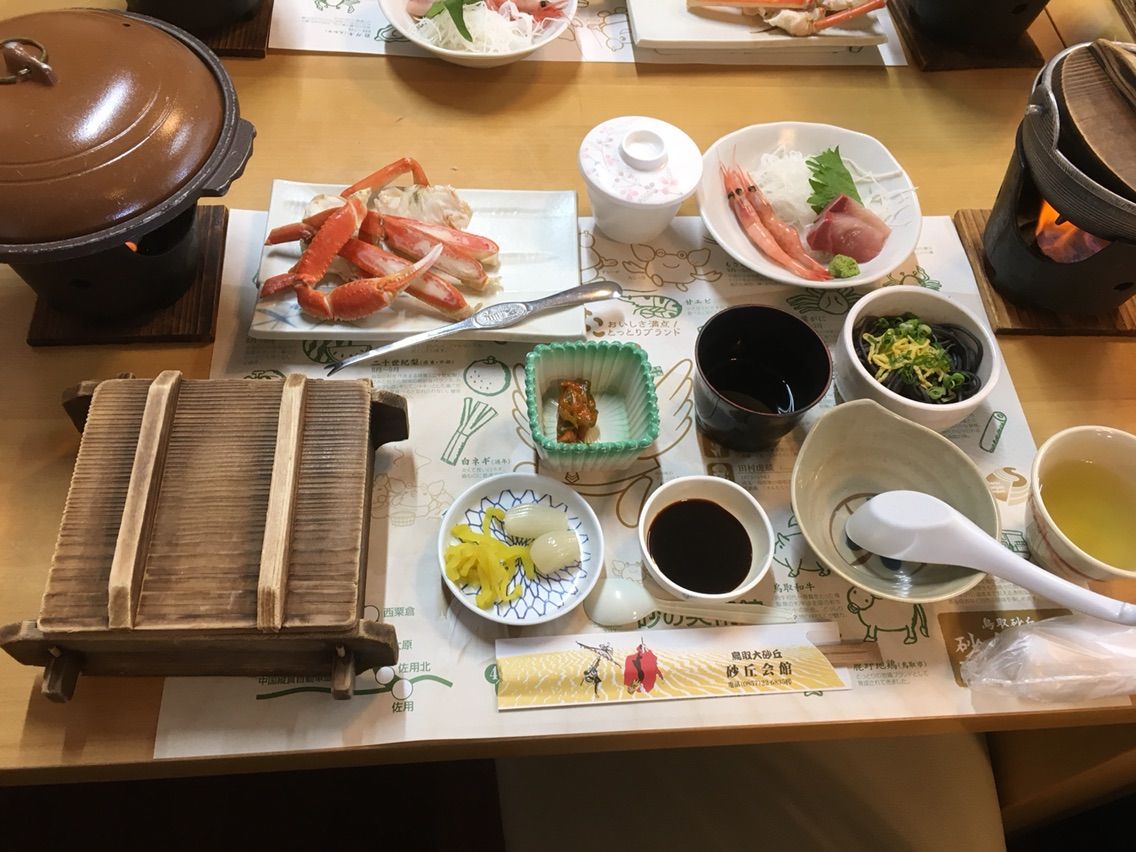 夕食は、PM6:00で予約。「かに&肉大山&ご当地メニュー食べ放題」でした。