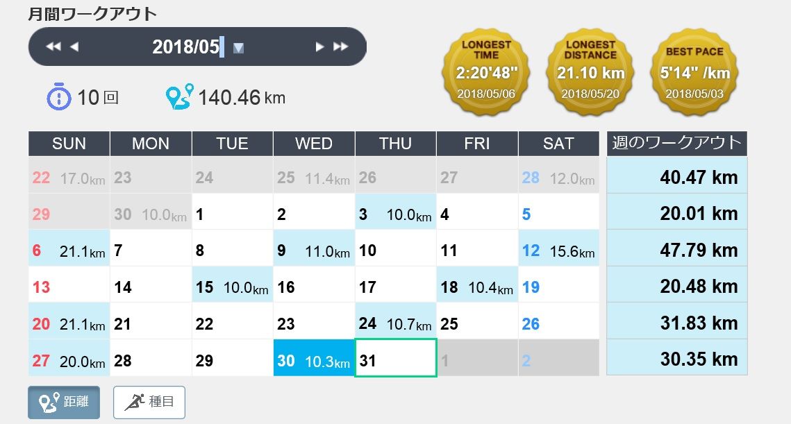 去年の夏は、足の故障でほとんど走っていませんでした。一昨年の夏は、タオルがないと汗が流れ落ち、目に染みるぐらい吹き出していたのが、今日は汗はかくものの、吹き出すということはありませんでした。涼しい気温の時間帯に走っていたので体がまだ暑さに適応していないのだと思います。