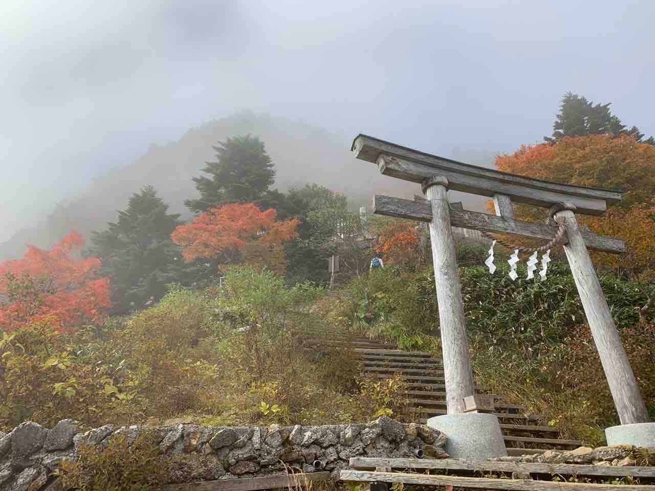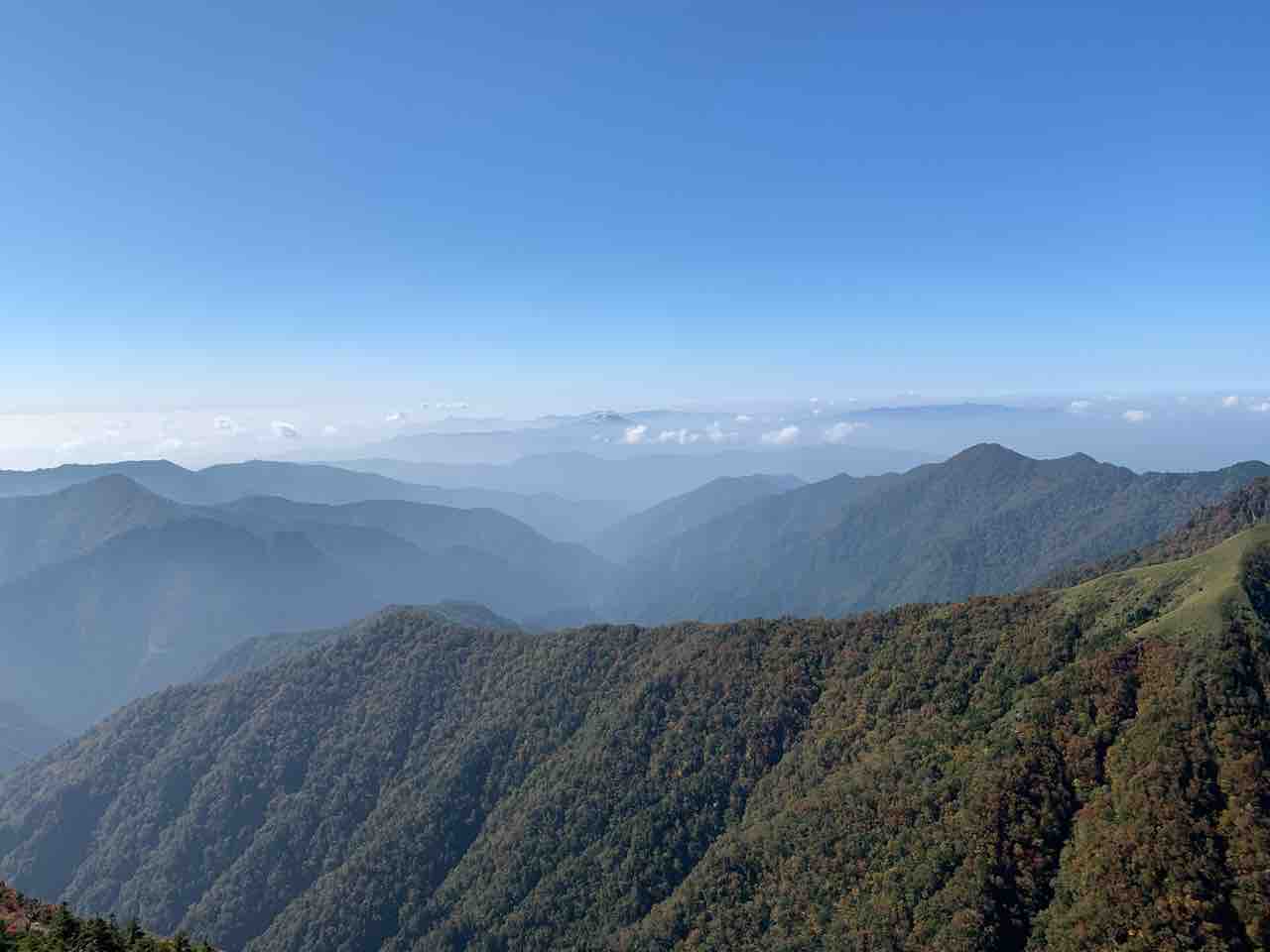 いつの間にか霧が無くなり晴れてきました。景色が見渡せ、紅葉を所々で目にするようになりました。